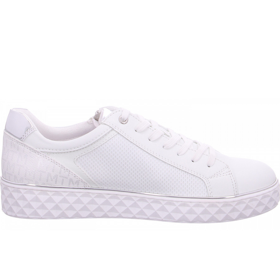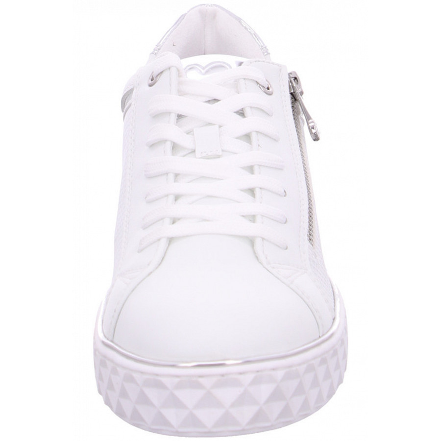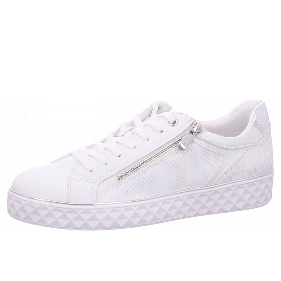 Der coole Sneaker für Damen von Marco Tozzi vereint lässigen Stil und hochwertige Verarbeitung. In einem zeitlosen Weiß, das durch silberne Akzente ergänzt wird, ist dieser Sneaker ein modisches Highlight für jeden Anlass. Der seitliche Reißverschluss sorgt für ein einfaches An- und Ausziehen und verleiht dem Design eine moderne Note.Dieser Sneaker ist die perfekte Wahl für Damen, die Wert auf Stil und Komfort legen – ideal für den Alltag oder besondere Anlässe. Bleiben Sie trendy und bequem mit diesem vielseitigen Schuh.