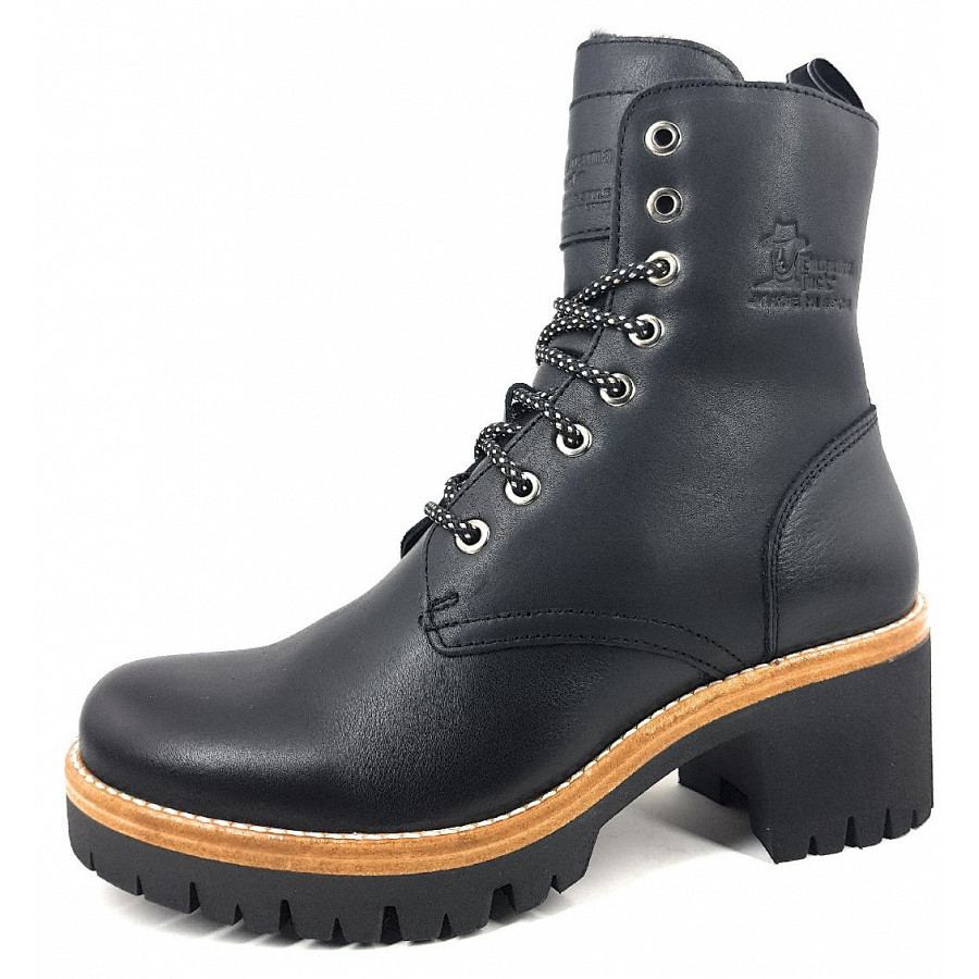 Das schöne, individuell genarbte Obermaterial ist aus geschmeidigem Glattleder (Napa) in Schwarz (Negro/Black). Die eigentlich sportiven Schnürsenkel sind mit Glanzgarn in Gold und Silber durchwoben. Der naturbraune Lederrahmen mit heller Naht, macht das Gesamtkonzept perfekt. Das Futter und die Decksohle sind aus kuscheligem Webpelz. Die Laufsohle und der stabile Absatz aus Gummi, sind mit kräftigem Profil ausgestattet.