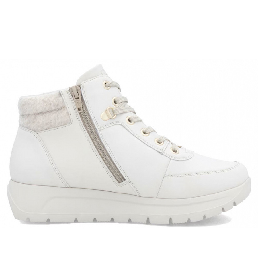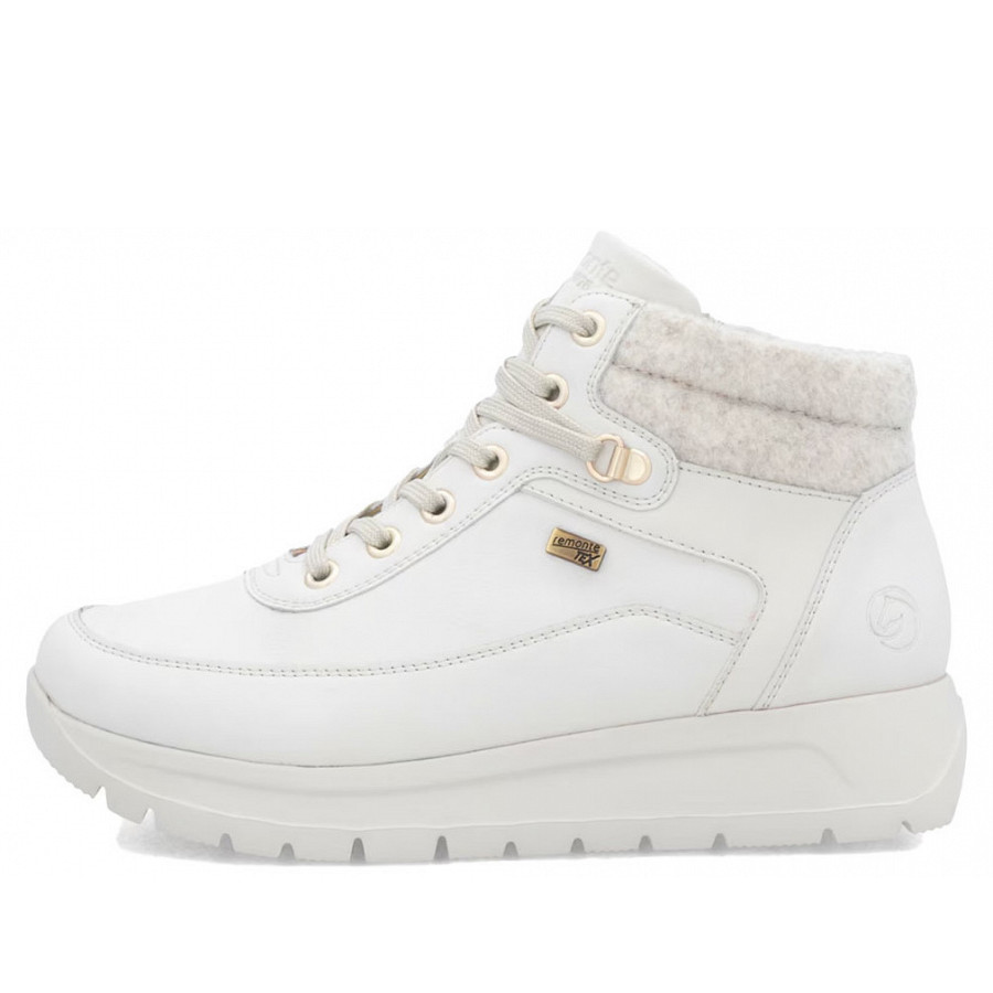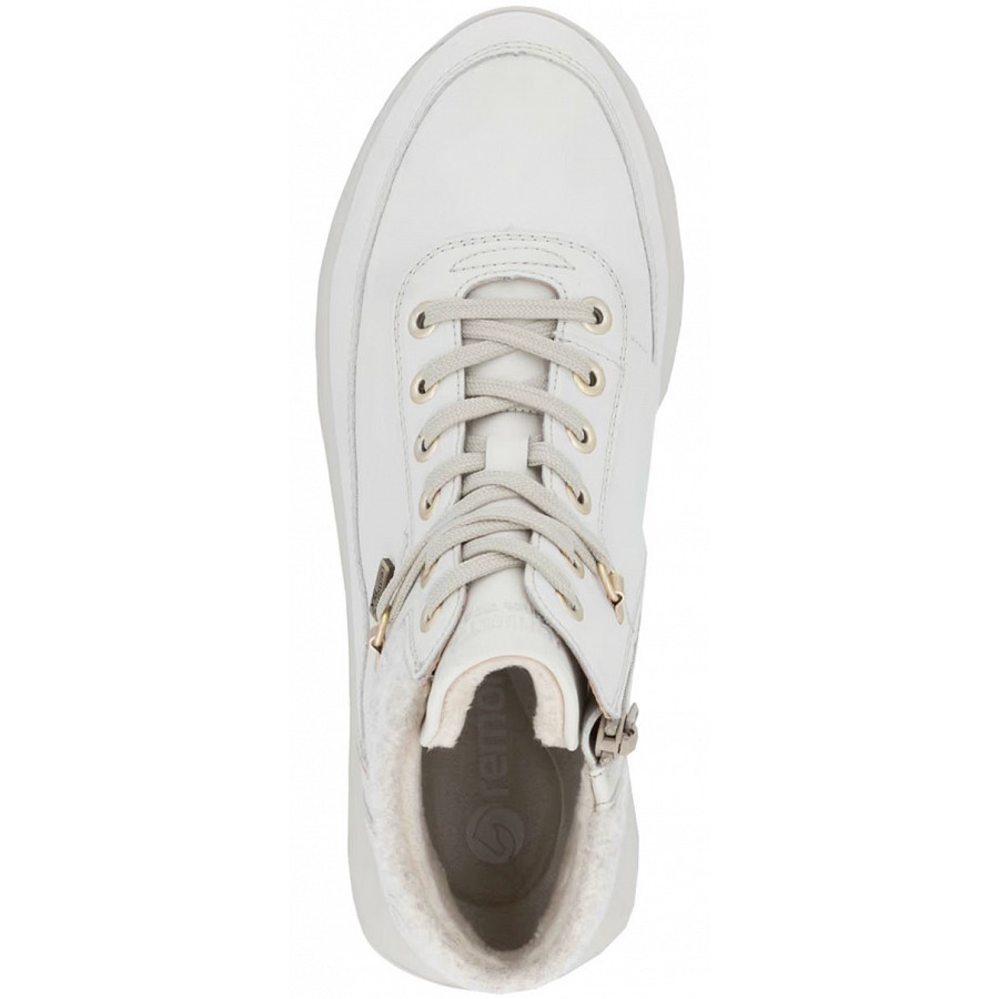 Gewusst, wie: Diese weißen remonte Kurzstiefel für Damen aus Glattleder sind nicht nur ultra stylisch, sie punkten auch mit ihren Komfortfeatures. Neben der Schnürung ist das Modell auch mit einem Reißverschluss versehen und sorgt so für idealen Halt. Lite 'n Soft: Die gepolsterte und herausnehmbare Einlegesohle trifft auf eine ultraleichte Laufsohle. Das Modell sichert dem Fuß zusätzlichen Bewegungsfreiraum, denn es ist in Extraweite geschnitten. Die remonteTEX-Technologie stattet den Schuh mit einer wasserabweisenden Membran für nass-kaltes Wetter aus. Mehr Coolness geht nicht!